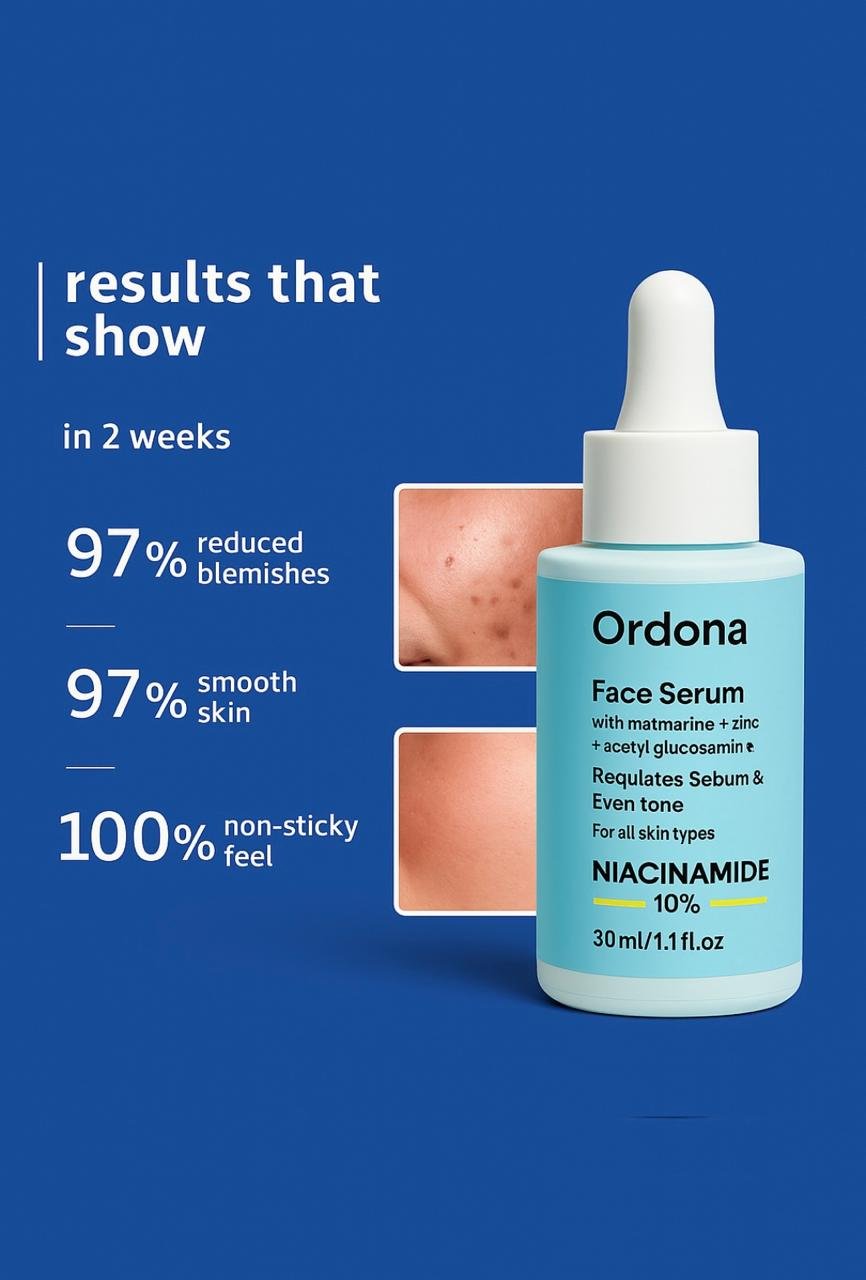 Ordona Niacinamide Serum is a lightweight, fast-absorbing formula designed to target multiple skin concerns. Enriched with Niacinamide (Vitamin B3), it helps reduce dark spots, pigmentation, and acne marks, while refining pores and balancing oil production. Regular use promotes a brighter, smoother, and more even-toned complexion. Perfect for daily use, this serum enhances your skin’s natural glow without feeling sticky or heavy.