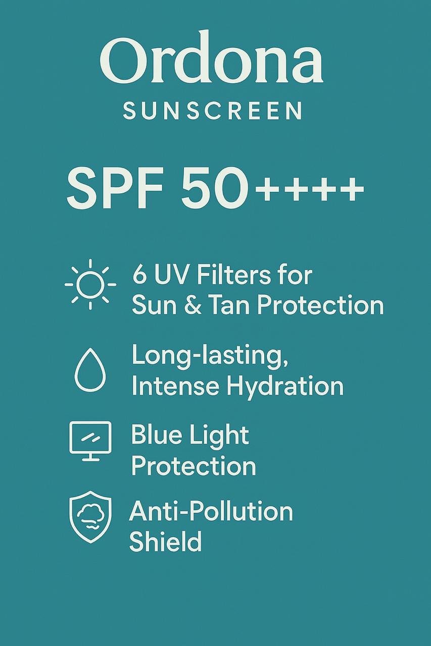 Protect your skin from harmful sun rays and blue light damage with Ordona’s advanced sunscreen.